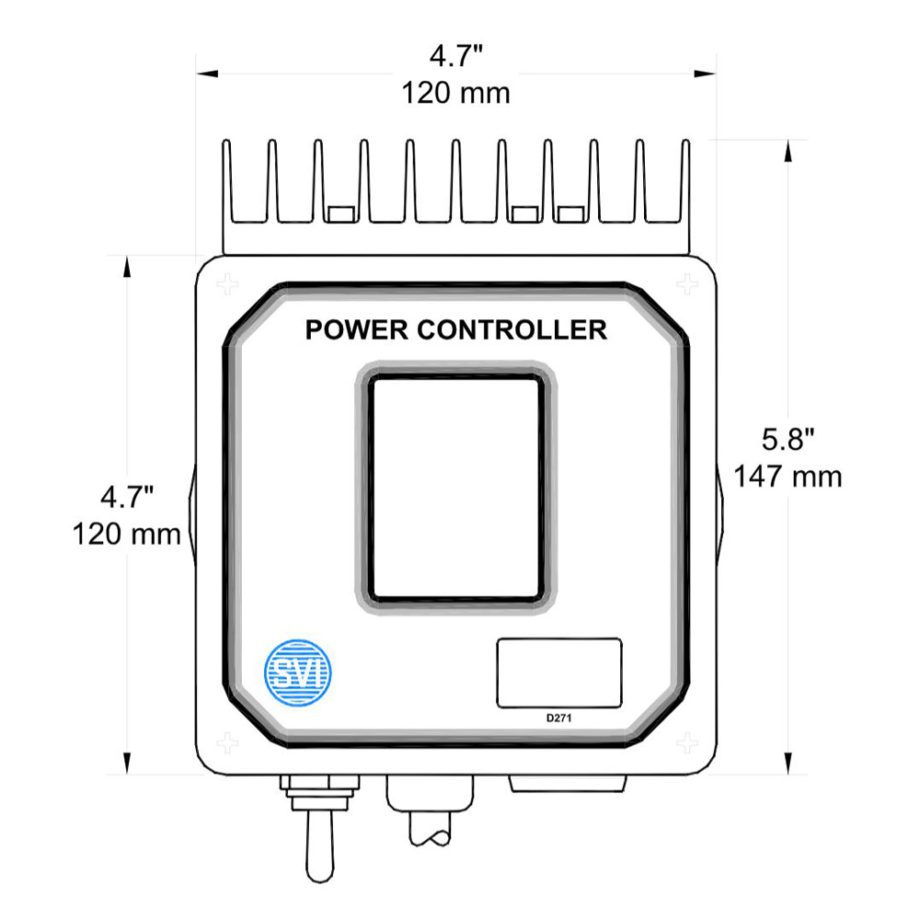 The SVI Power Controller operates vibratory hoppers, bowl feeders, and inline feeders using phase-controlled AC power. 10A, 120V, NEMA 1 enclosure